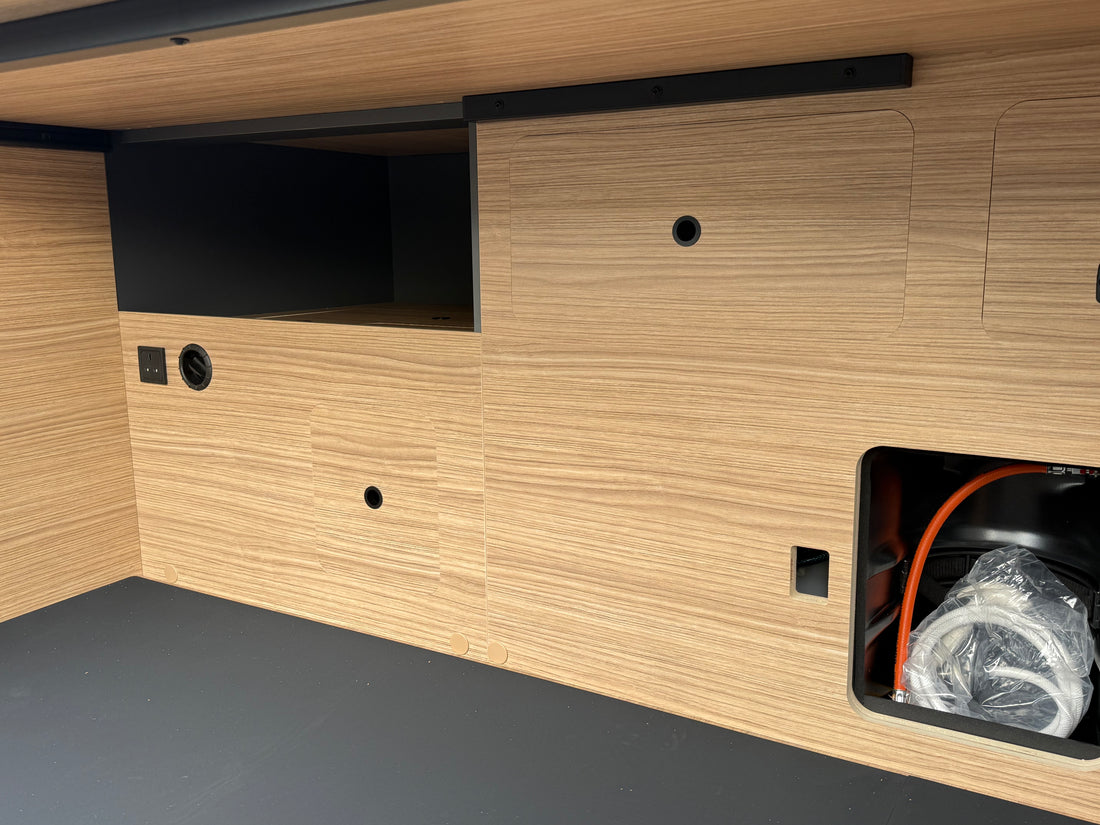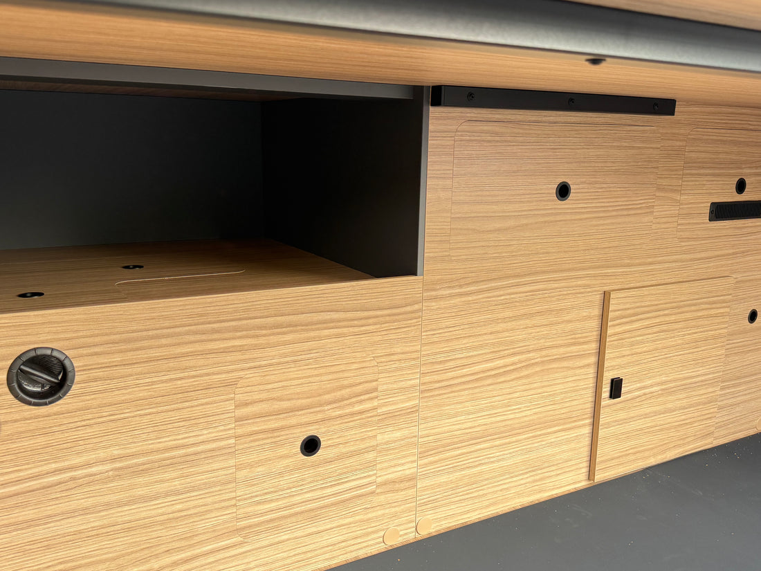 ✔️ Worktops: Oak Graphite with Taupe custom accents