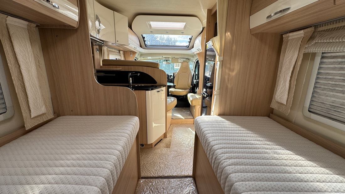 From electronic blind control, wireless phone charging, and second toilet cassette to duckboard shower flooring, every inch of this motorhome is engineered for those who won’t settle for average.
